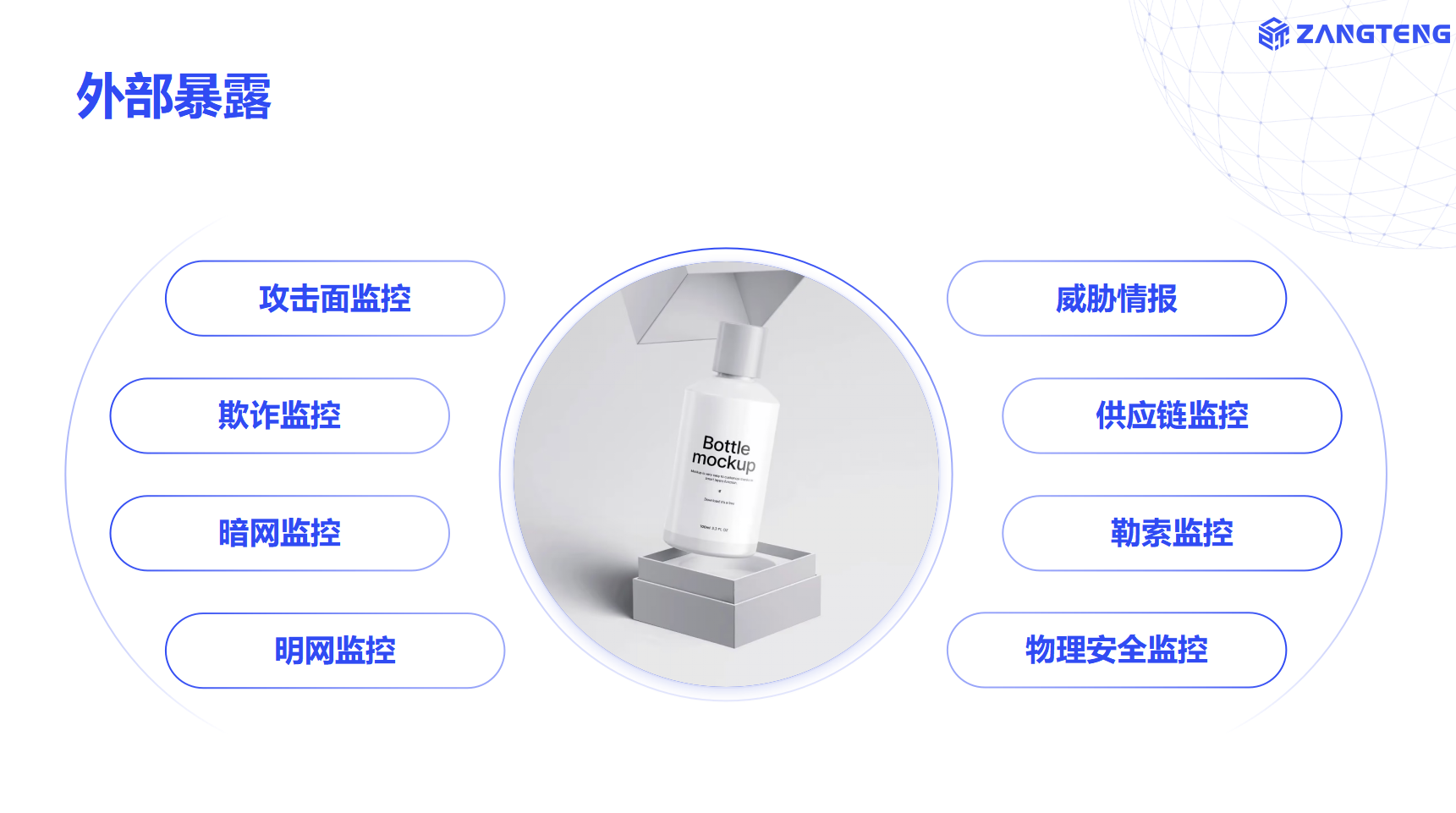 外部暴露包括品牌保护、VIP保护、攻击面监控、供应链监控、暗网监控、明网监控、威胁情报、勒索监控、欺诈监控等技术。