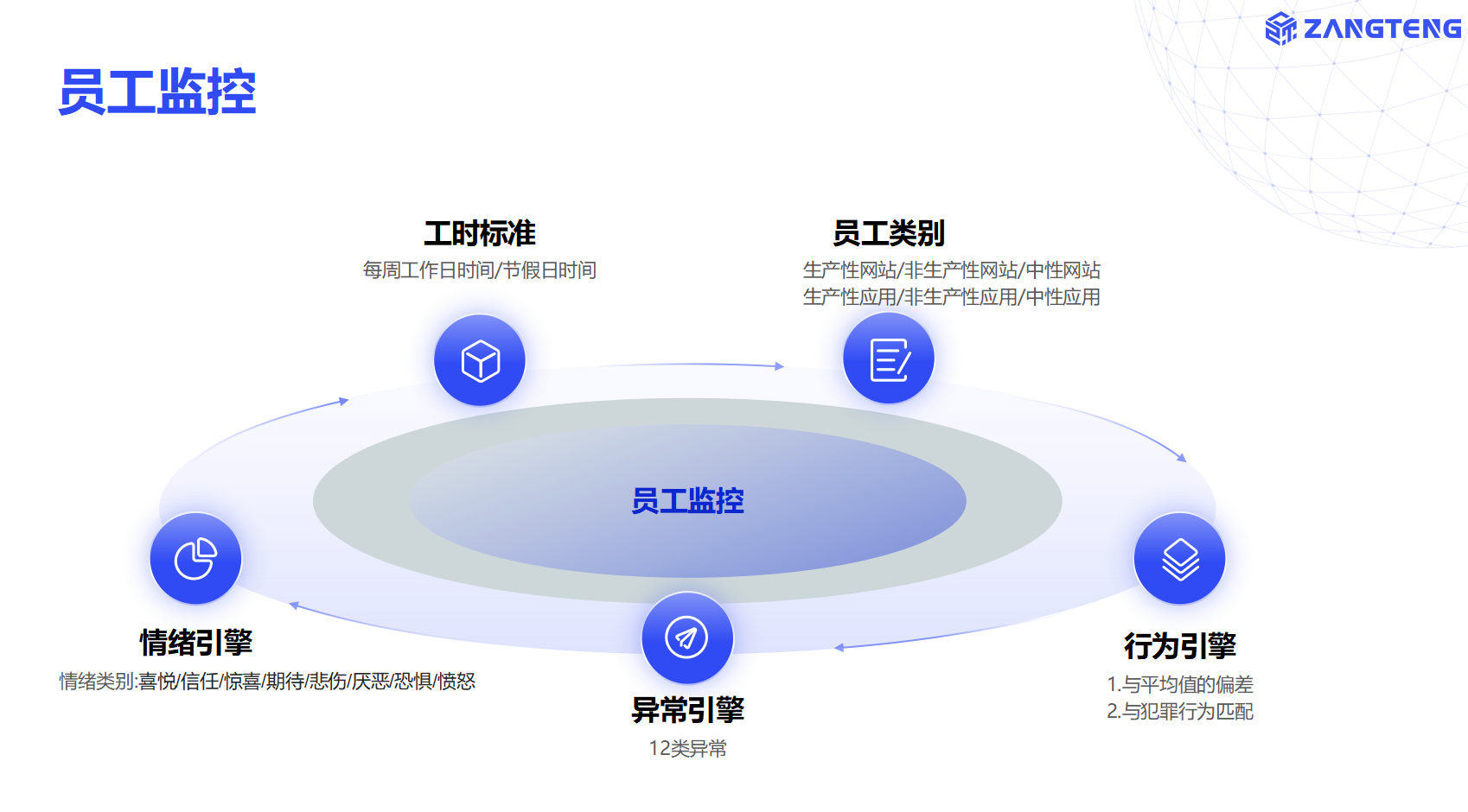 用户活动监控技术前沿涉及设备、应用、互联网、邮件、聊天、网关、存储等多种技术。