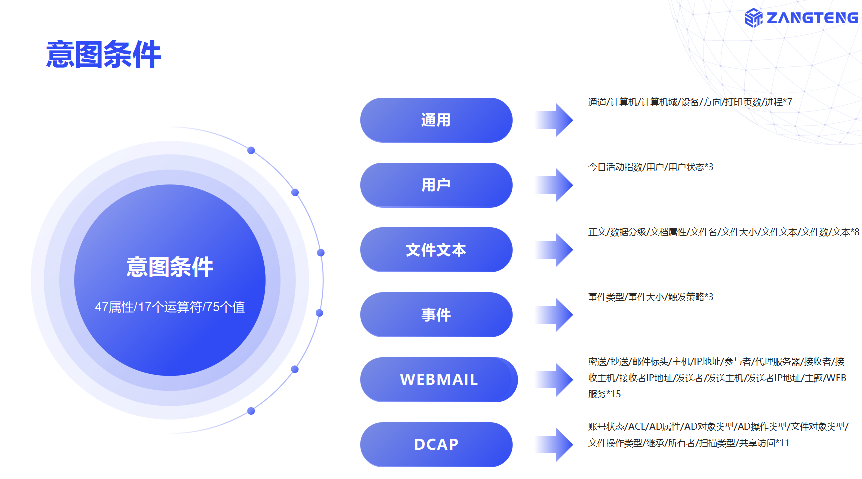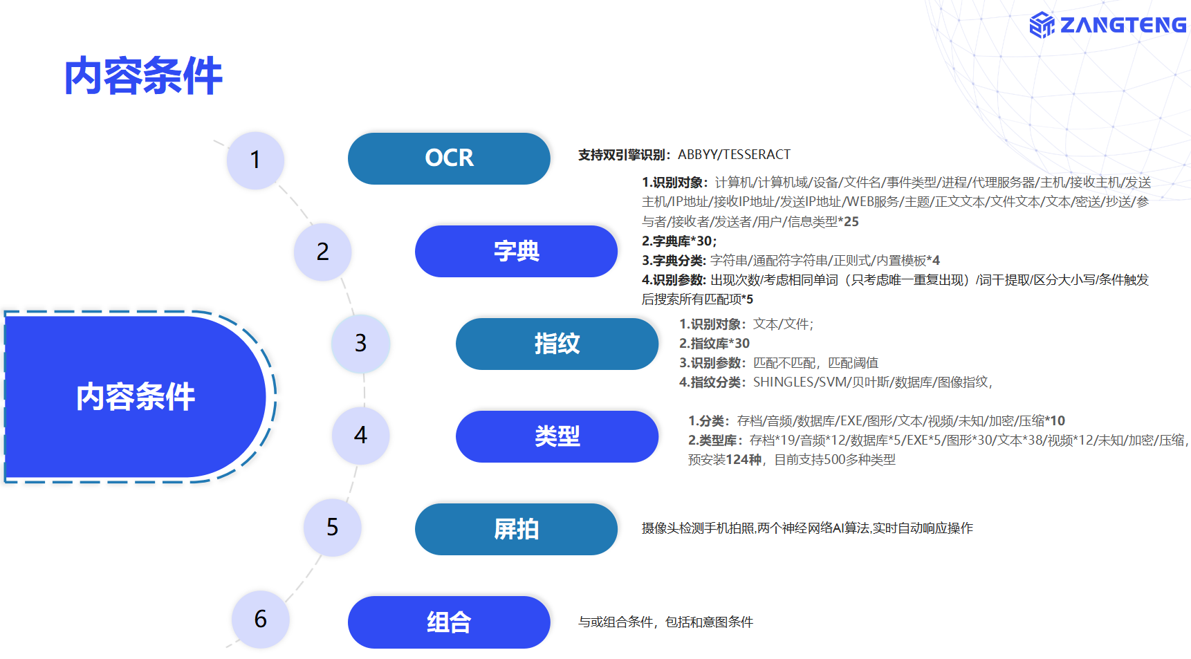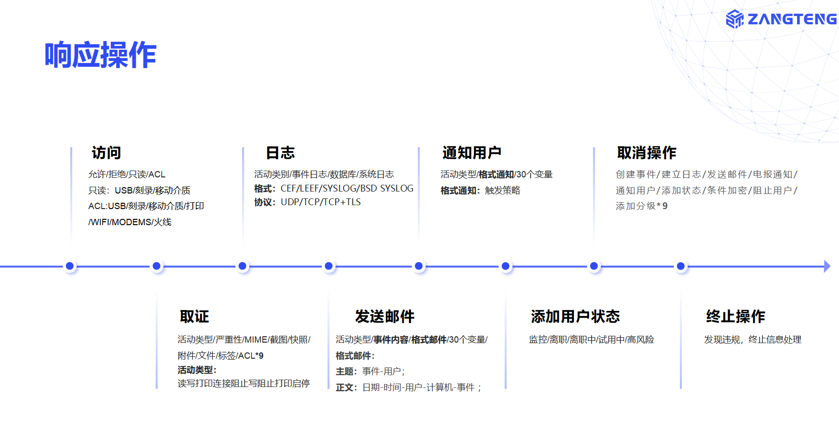 数据检测响应包括设备DDR、互联网DDR、邮件DDR、聊天DDR、应用DDR、屏拍DDR、发现DDR、身份DDR、文件DDR、员工DDR、存储DDR等前沿技术。