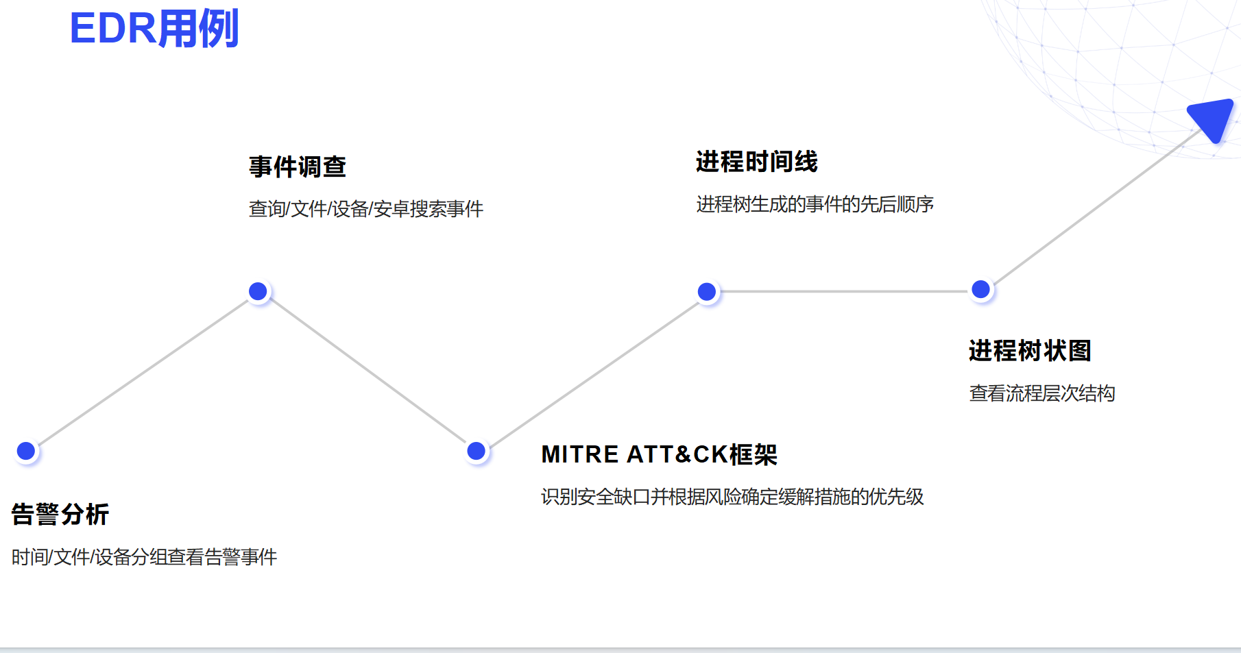 端点安全包括高级端点保护、端点检测响应和统一端点管理。跨平台支持LINUX/WINDOWS/MAC/IOS/安卓。